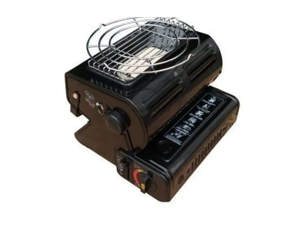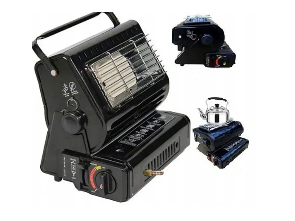В стандартный комплект представленного обогревателя входят подставка для приготовления пищи и редуктор для подключения обычного газового баллона.