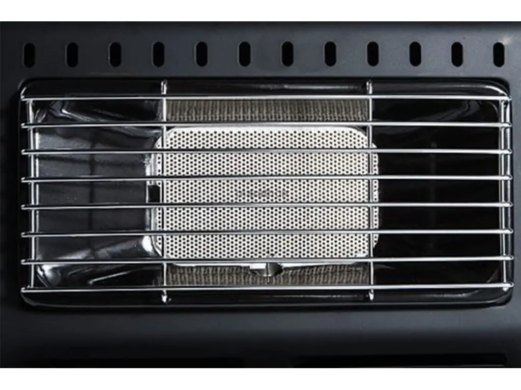 - Керамический нагревательный элемент прогревается газом и производит обогрев с помощью инфракрасного излучения