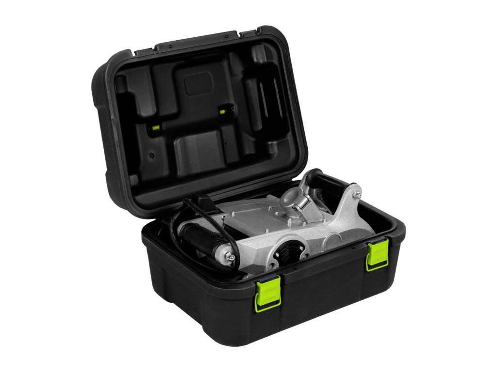 Двигатель мощностью 1,1 кВт обеспечивает эффективную штробовку бетона, кирпича, газоблоков и других твердых материалов, имеет плавный старт и защиту от перегрузки. Кнопка запуска оснащена блокировкой от случайного включения. Для удобной работы эта штробельная машина имеет патрубок для подключения строительного пылесоса. Две разнесенные эргономичные ручки с противоскользящими накладками и виброизоляцией обеспечивают точный контроль положения инструмента и уменьшают усталость при продолжительной работе.