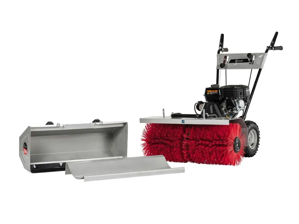 Lumag KM 800 это бензиновая подметальная машина для уборки больших площадей. С ее помощью убирают не только мусорные частицы, но и счищают свежий снежный покров.