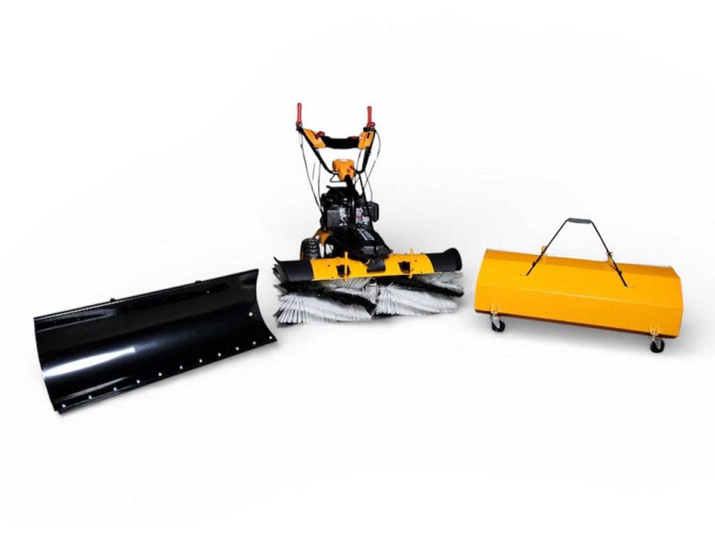 Подметальная машина MAST Gartentechnik MT-KM1000 3 в 1 – это универсальная техника для уборки мусора, песка, почвы, опавших листьев, небольшого слоя свежего снега и снежной каши. Оснащена вращающейся цилиндрической щеткой с прочным полипропиленовым ворсом шириной 100 см, которая имеет возможность поворота и регулируется по высоте. Защитные боковые кожухи направляют мусор вперед или в сторону. 4-тактный бензиновый двигатель LONCIN LC1P70FC обеспечивает эффективную работу с тяжелым мусором и снегом и полную автономность машины. Отдельные приводы на колеса и вращение щетки повышают удобство работы и качество уборки.