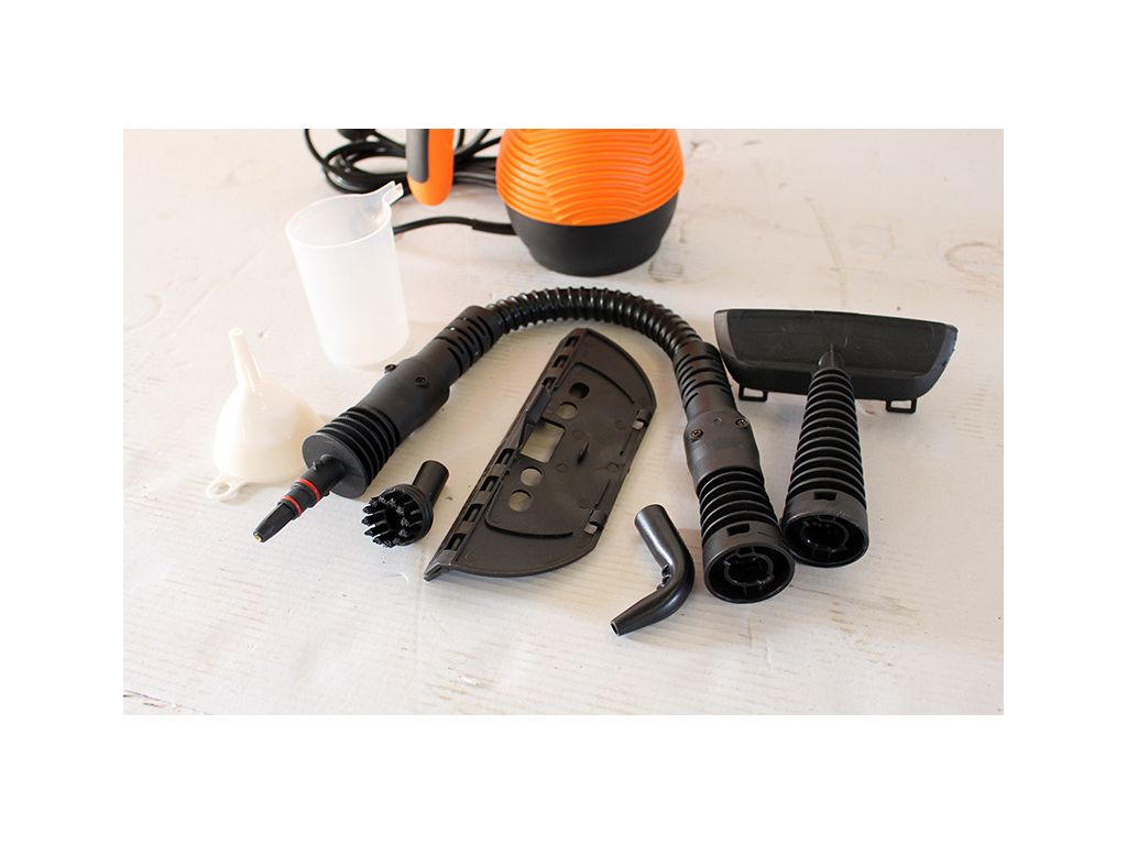 - аппарат работает под давлением 3 Бар, благодаря чему обеспечивает єффективную очистку поверхностей от грязи, налета, грибка и бактерий.