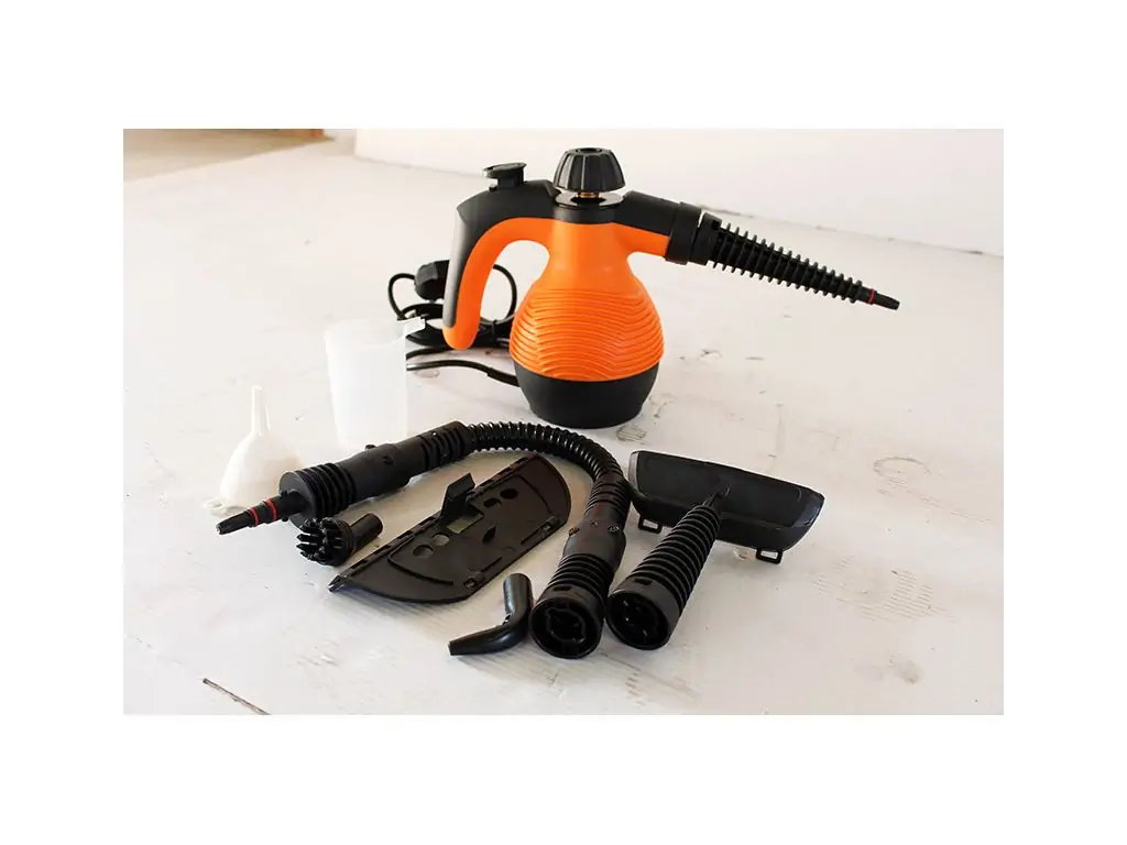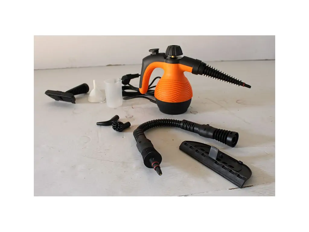 Компактный пароочиститель в комплекте с аксесуарами для быстрой и эффективной уборки в ванной, очищения вытяжек, кухонных плит, смесителей, швов плитки и прочих поверхностей.