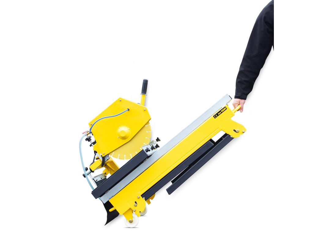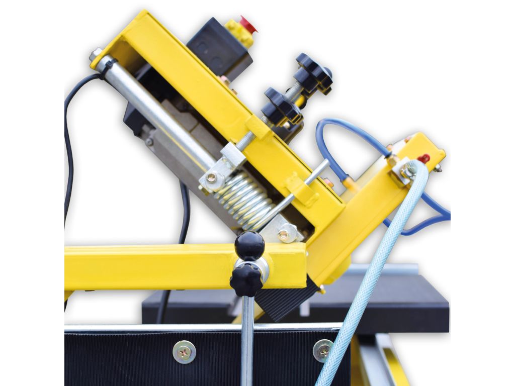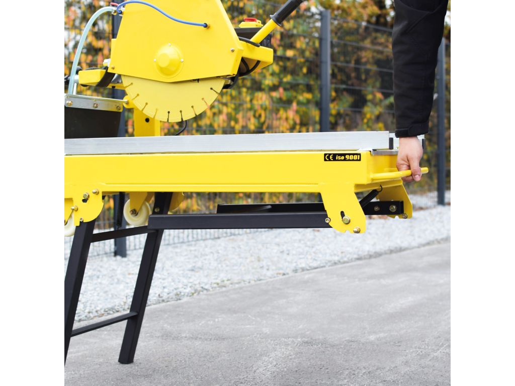 - система водяного охлаждения включает резервуар на 38 л для мокрой распиловки, что снижает нагрев диска, образования пыли и продлевает эксплуатационный срок агрегата;