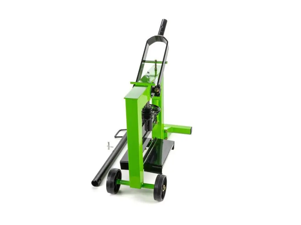 Управление раскалыванием осуществляется с помощью ручного рычага с фиксатором, который обеспечивает поступательную нагрузку и позволяет создавать усилие без значительной физической нагрузки на оператора. 2 колеса дают возможность легко перемещать этот ручной камнерез, а полная независимость от источников питания – использовать его на удаленных объектах.