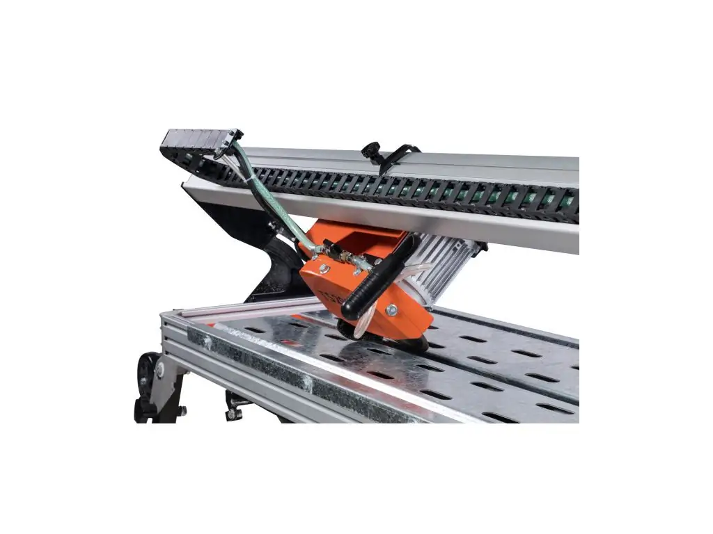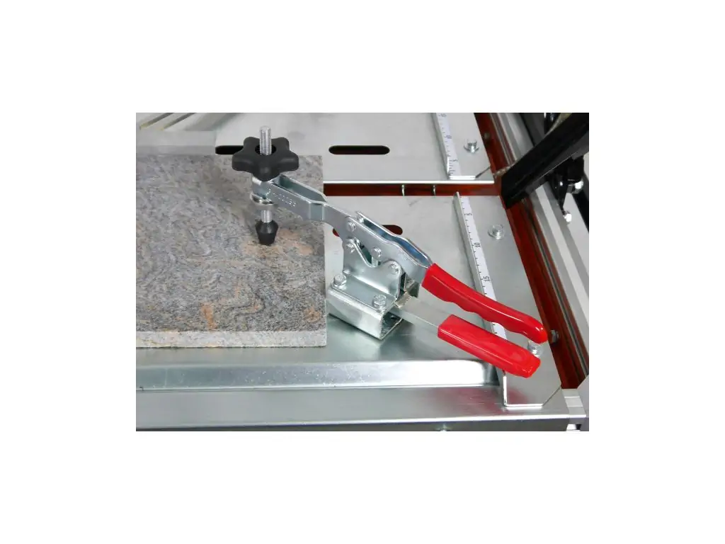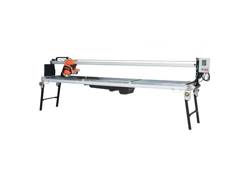 Плиткорез Gölz TS250A специально разработан для резки широкоформатной плитки и керамических панелей методом мокрой резки. К нему можно добавить удлинитель, который позволяет резать плитку длиной до 330 см. Машину можно оборудовать до восьми боковыми ручками (дополнительные аксессуары).