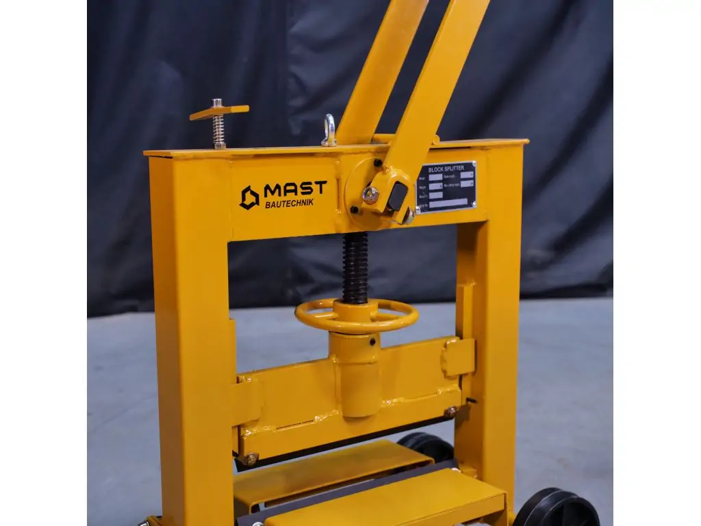 Ручной колун брусчатки MAST Bautechnik MT-BS3214 - это компактное, простое в эксплуатации оборудование для раскалывания брусчатки, тротуарной плитки, композитного камня, панелей, бордюров и подобных материалов. Раскалывание осуществляется вручную, с помощью длинного рычага с противовесом, который создает значительное усилие и уменьшает физическую нагрузку на оператора. Оснащен ножевой планкой из закаленной стали. Максимальная ширина реза составляет 330 мм, глубина резки регулируется в диапазоне 26-140 мм с помощью центрального нарезного шпинделя.