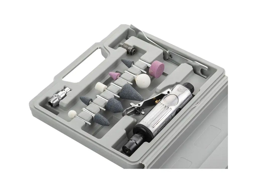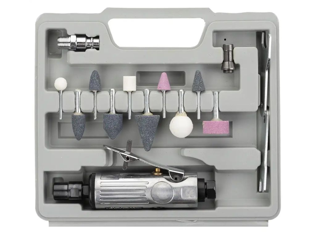 - 10 шлифовальных насадок (конус 15х12 мм/ конус 24х13 мм/ конус 21х13 мм/ конус 27х19 мм/ конус 34х24 мм/ шар 12х12 мм/шар 23х23 мм/ цилиндр 12х24 мм/ цилиндр 27х19).