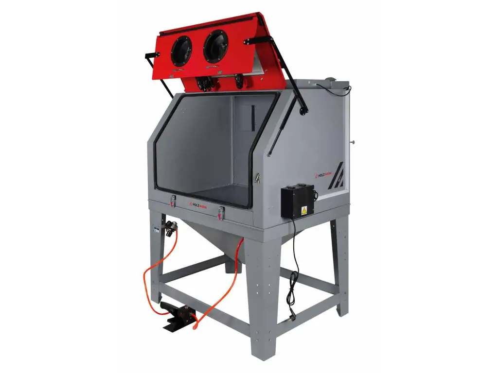 Модель оснащена вытяжной системой с производительностью всасывания 156 м3/ч, что обеспечивает чистоту рабочей зоны и комфортную работу. В комплект поставки входит пескоструйный пистолет со сменными насадками с соплом 4, 5, 6, 7, благодаря чему можно регулировать силу и направление абразивной струи. Эта камера пескоструй – самая большая в линейке Holzmann и позволяет обрабатывать достаточно большие детали.
