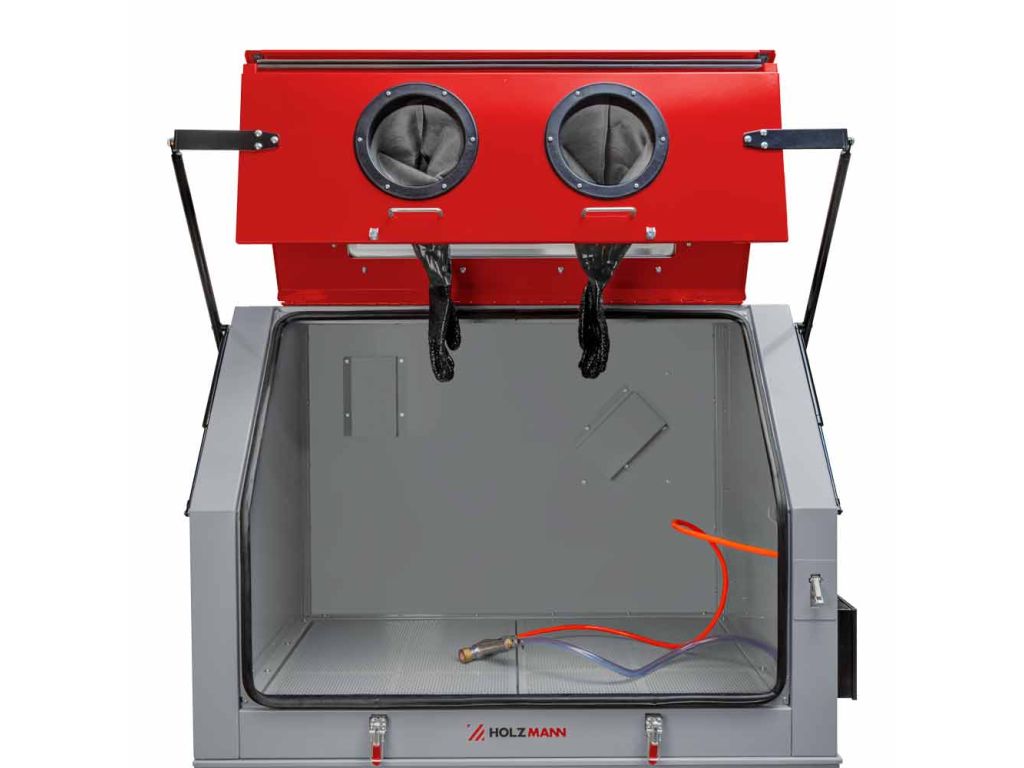 Модель оснащена вытяжной системой с производительностью всасывания 156 м3/ч, что обеспечивает чистоту рабочей зоны и комфортную работу. В комплект поставки входит пескоструйный пистолет со сменными насадками с соплом 4, 5, 6, 7, благодаря чему можно регулировать силу и направление абразивной струи. Эта камера пескоструй – самая большая в линейке Holzmann и позволяет обрабатывать достаточно большие детали.