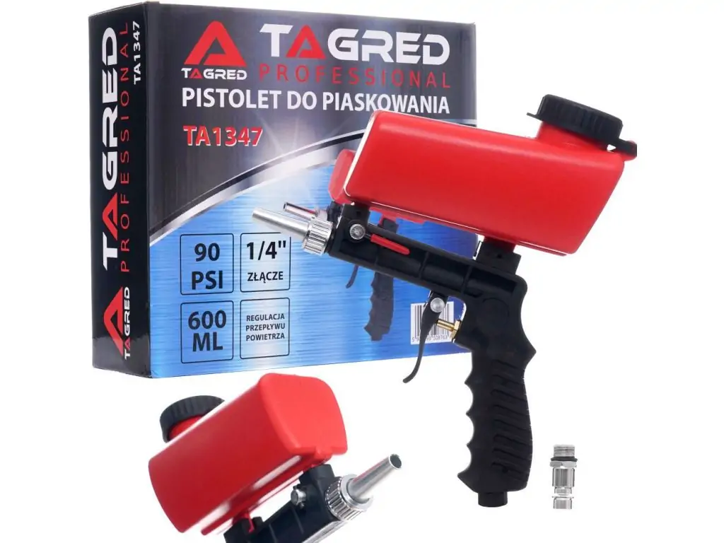 Пескоструйный пистолет TAGRED TA1347 идеально подходит для удаления краски, ржавчины, грязи. Благодаря небольшому размеру насадки и верхней емкости, песок выбрасывается с большим импульсом, что обеспечивает более быстрый эффект очистки. Он предназначен для точной работы и удаления грязи с небольших поверхностей.