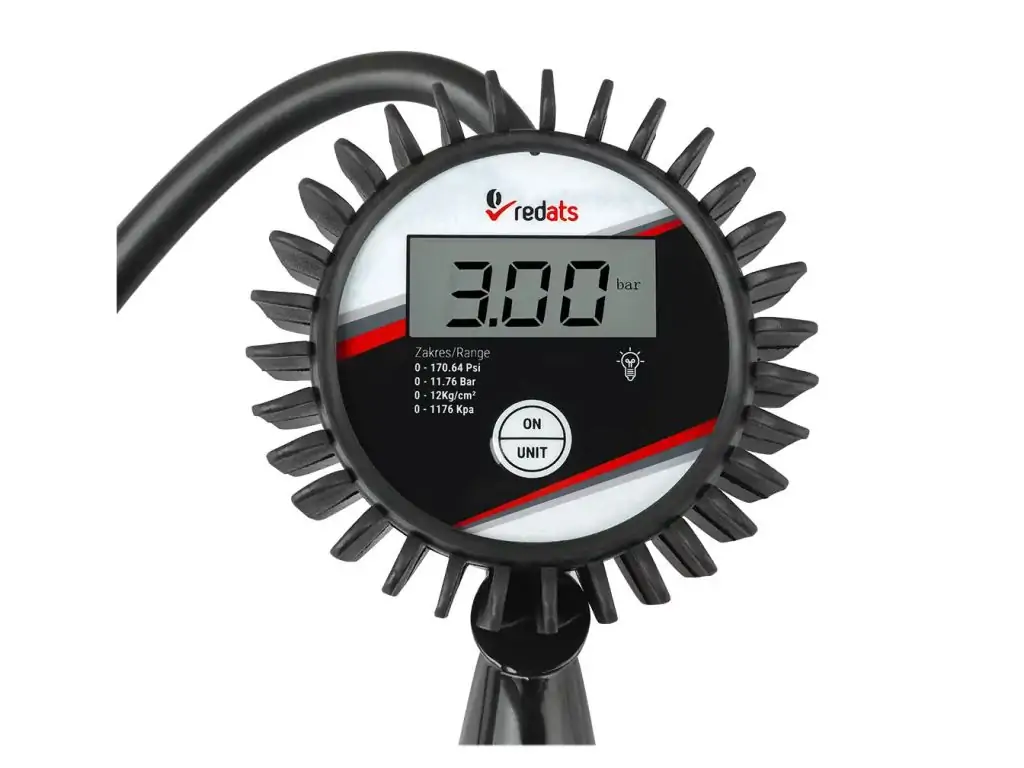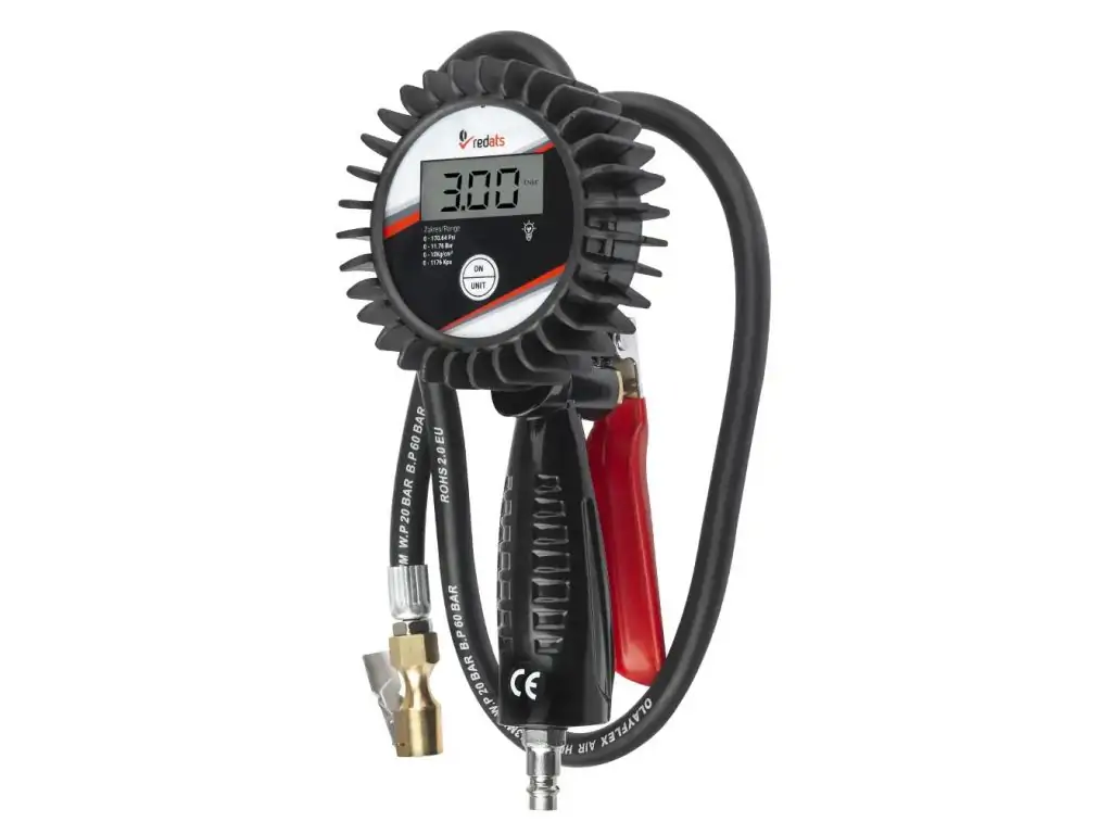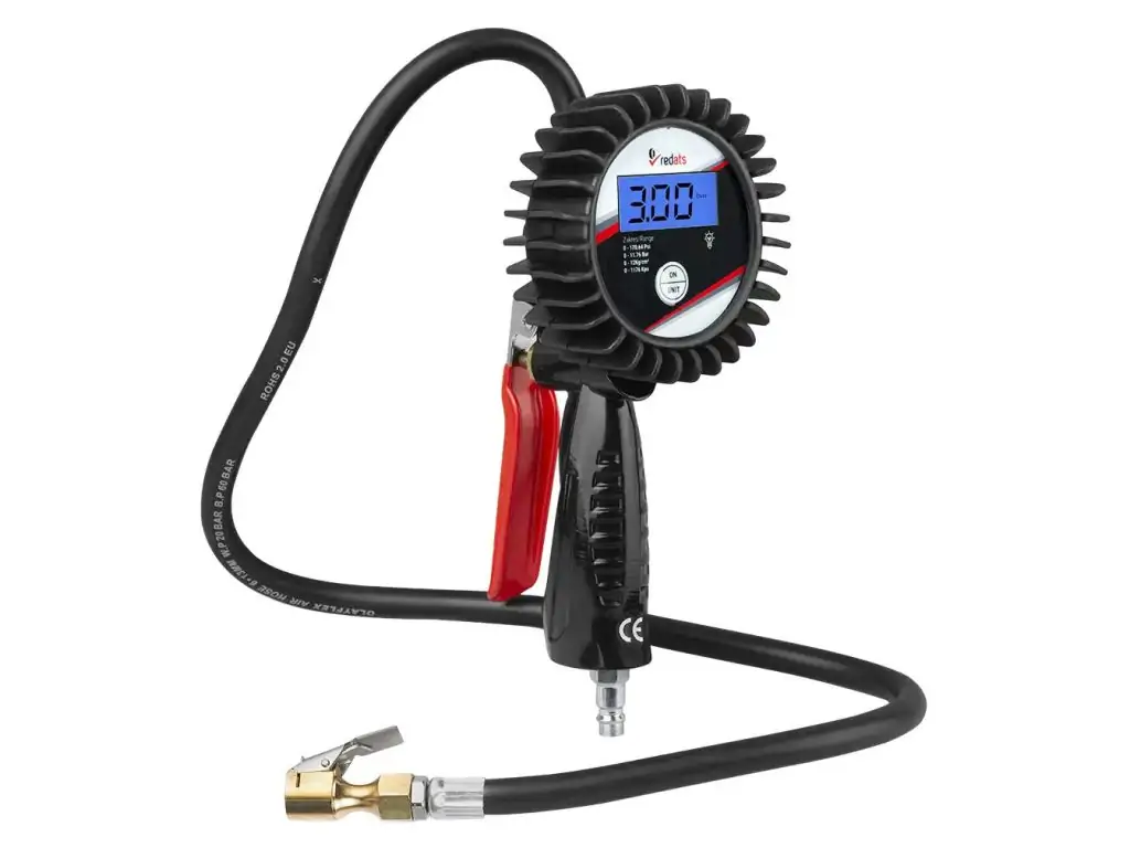 Пневмопистолет для накачки шин REDATS I-470E - это удобный инструмент для проверки давления в шинах и их подкачки при необходимости. Будет полезен как на автосервисах и шиномонтажах, так и для личного использования. Подходит для шин легковых автомобилей, мотоциклов, велосипедов и даже легких грузовиков. Оснащен чрезвычайно точным цифровым манометром, который поддерживает разные единицы измерения давления (0-170.64 PSI; 0-11.76 Bar; 0-12 кг/см²; 0-1176 kPa). Резиновый корпус защищает манометр от повреждений. Манометр работает от 2 батареек типа AAA.