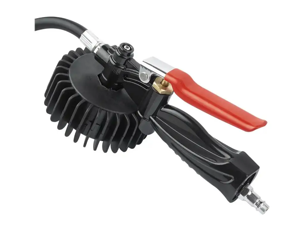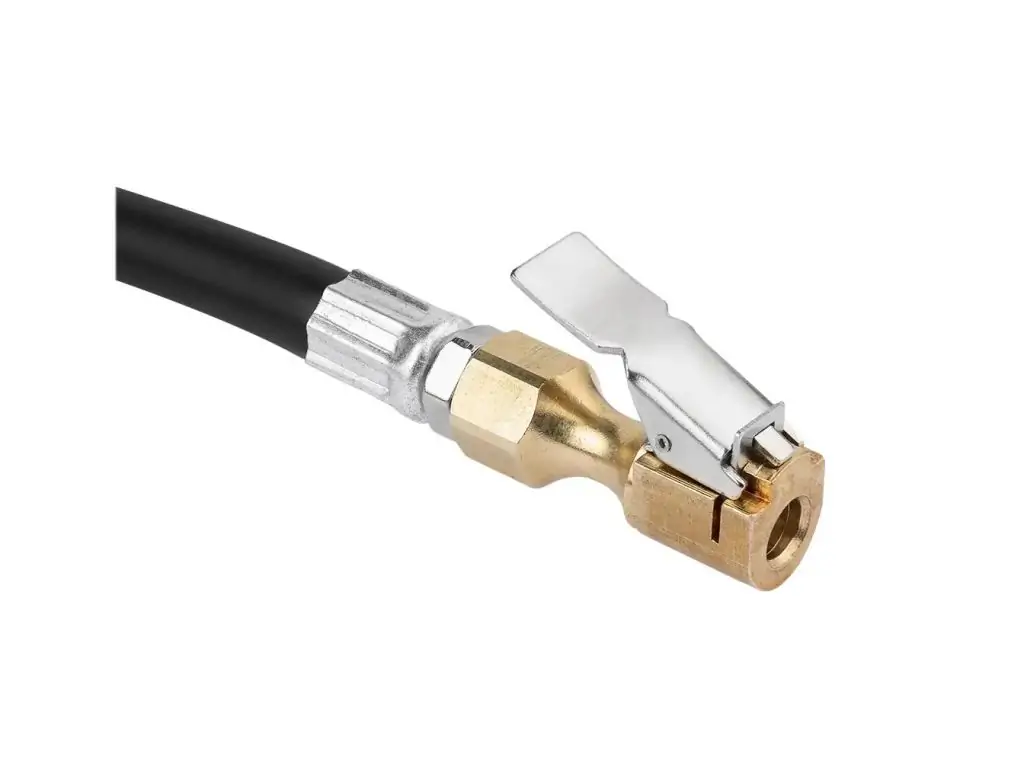 Оснащен аналоговым манометром, обеспечивающим диапазон измерения давления 0-12 Бар /0-170 Psi. Для защиты манометра от повреждений есть резиновый кожух. Гибкий шланг длиной 85 см позволяет удобно подключиться к вентилю шины и перемещаться вокруг колеса. Кнопка подачи воздуха дает возможность точно регулировать давление при накачке, а кнопка стравливания - спустить воздух из шины до нужного уровня. Этот пистолет для подкачки шин компактный и легкий, поэтому с ним легко и удобно работать.