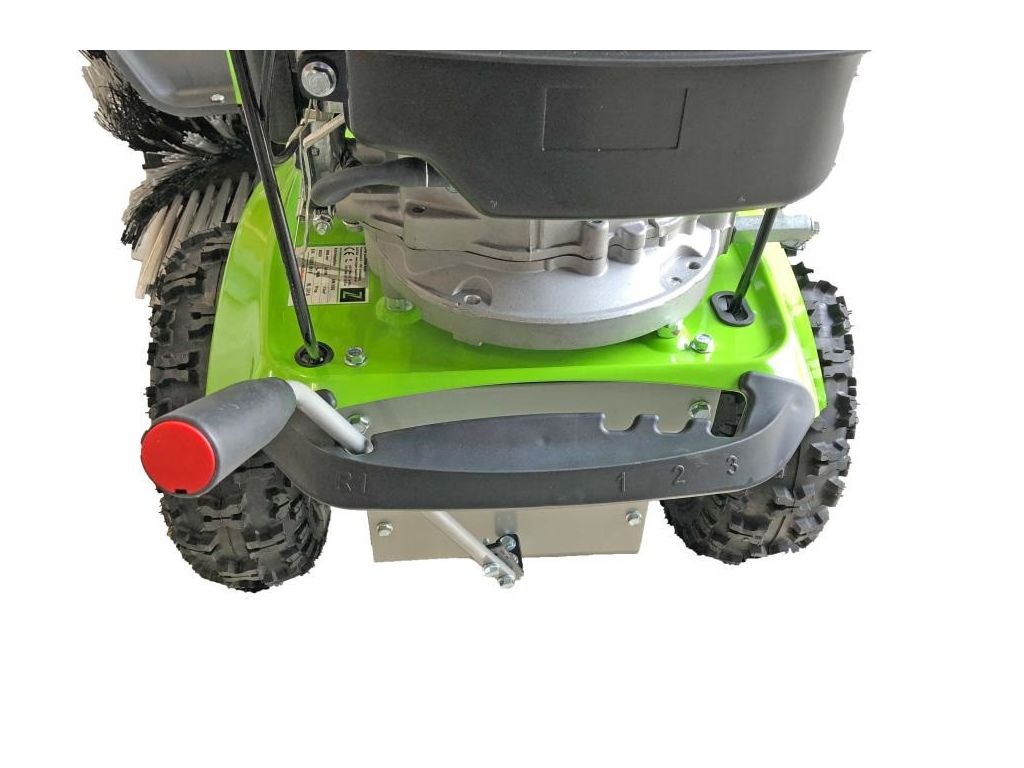 Подметальная машина ZIPPER ZI-KM1000 – это профессиональное оборудование для уборки средних и больших площадей от мусора, листьев и снега. Ширина щетки 100 см и 4-тактный бензиновый двигатель мощностью 6,5 л.с. с увеличенным моторесурсом обеспечивают быструю и эффективную работу. Щетка диаметром 350 мм имеет 2 скорости вращения, 180 и 350 об/мин, регулируется по высоте и углу наклона. Машина может выметать мусор перед собой или собирать его в 80-литровый контейнер, входящий в стандартную комплектацию. Также в комплект поставки входит снежный отвал.