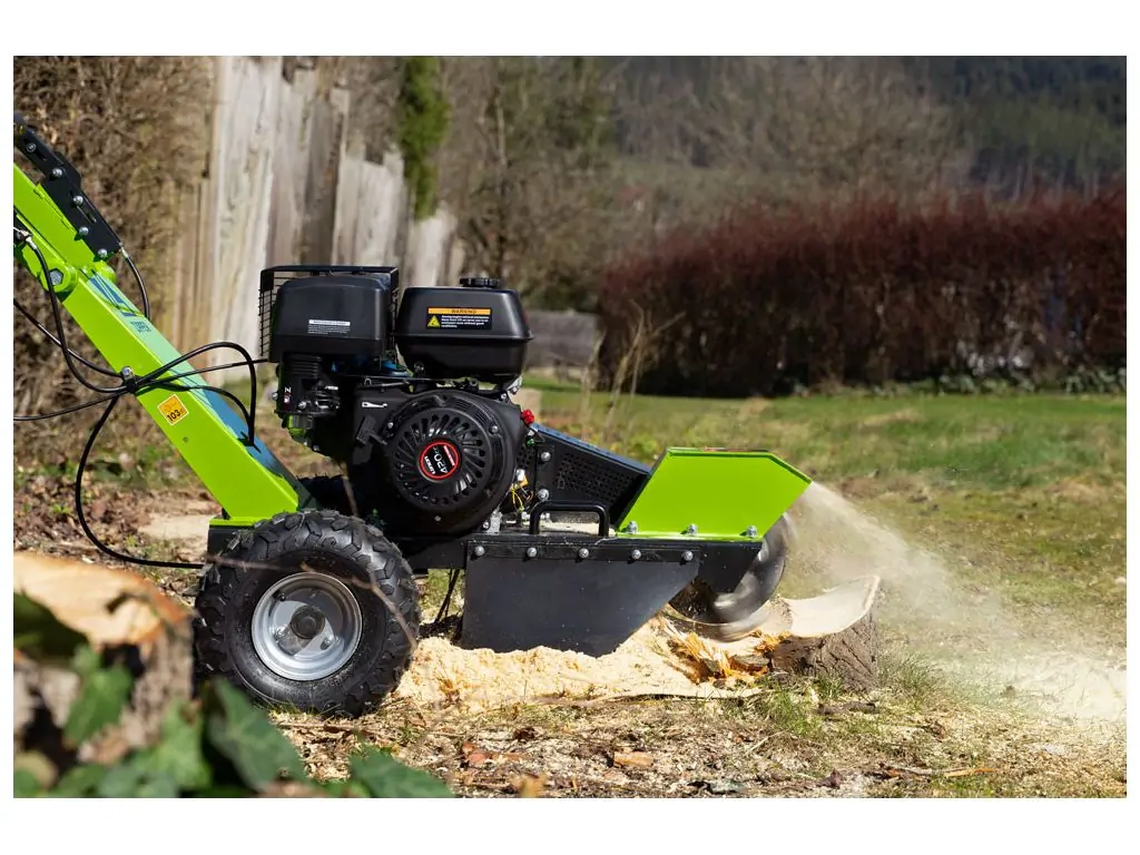 По способу передвижения измельчители пней делятся на ручные (оператор толкает машину) и самоходные (оснащены приводом на колеса).