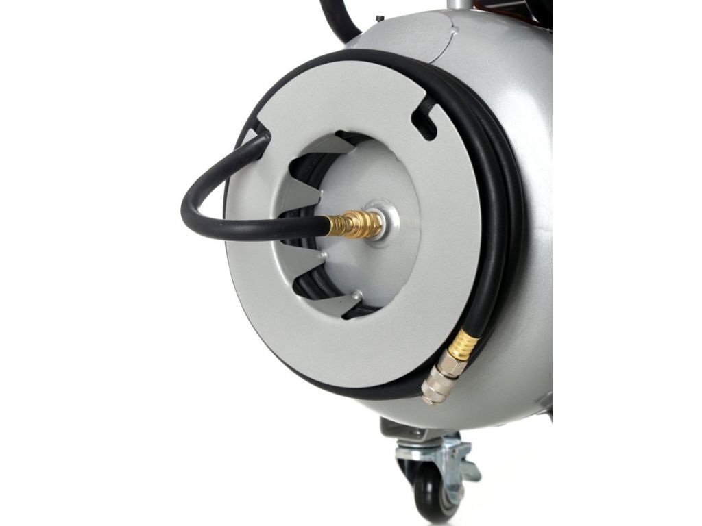 Небольшой вес компрессора делает его очень эргономичным, он также имеет автоматическую систему смазки, фильтрацию воздуха, редуктор давления и транспортные колеса.