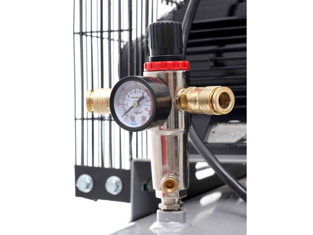 Эргономичный - он имеет редуктор давления, оснащенный инновационным механизмом регулировки, большой манометр, расположенный на компрессоре, облегчающем считывание параметров, и удобный сливной кран;