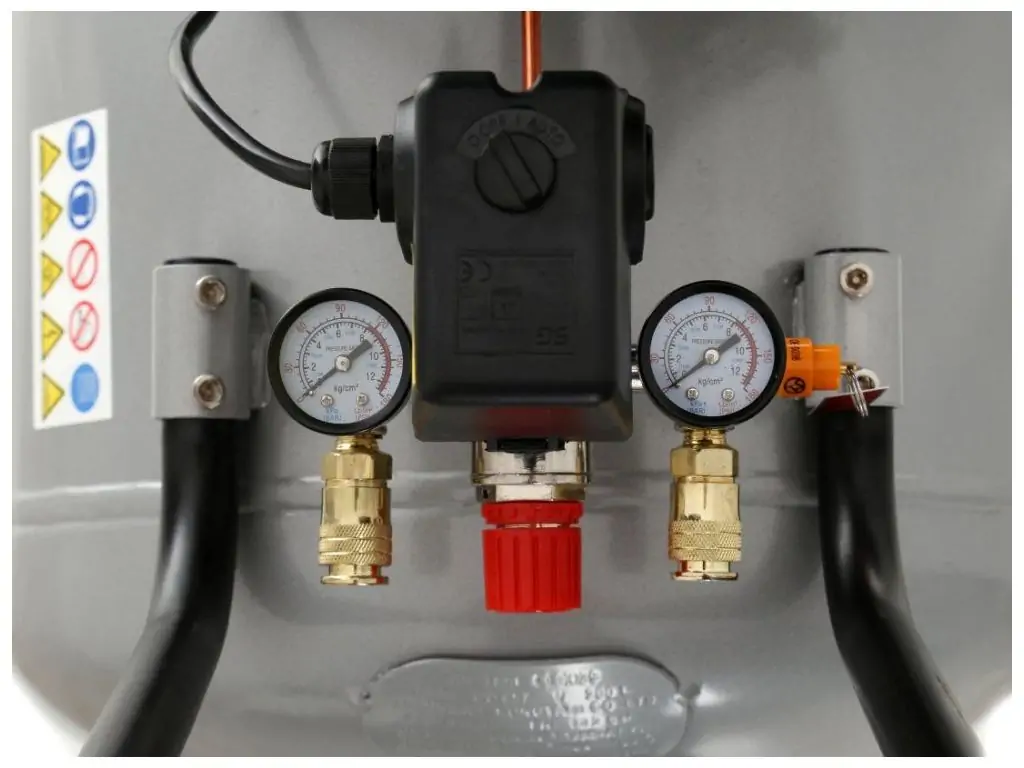 - Два больших металлических манометра, облегчающих считывание параметров работы