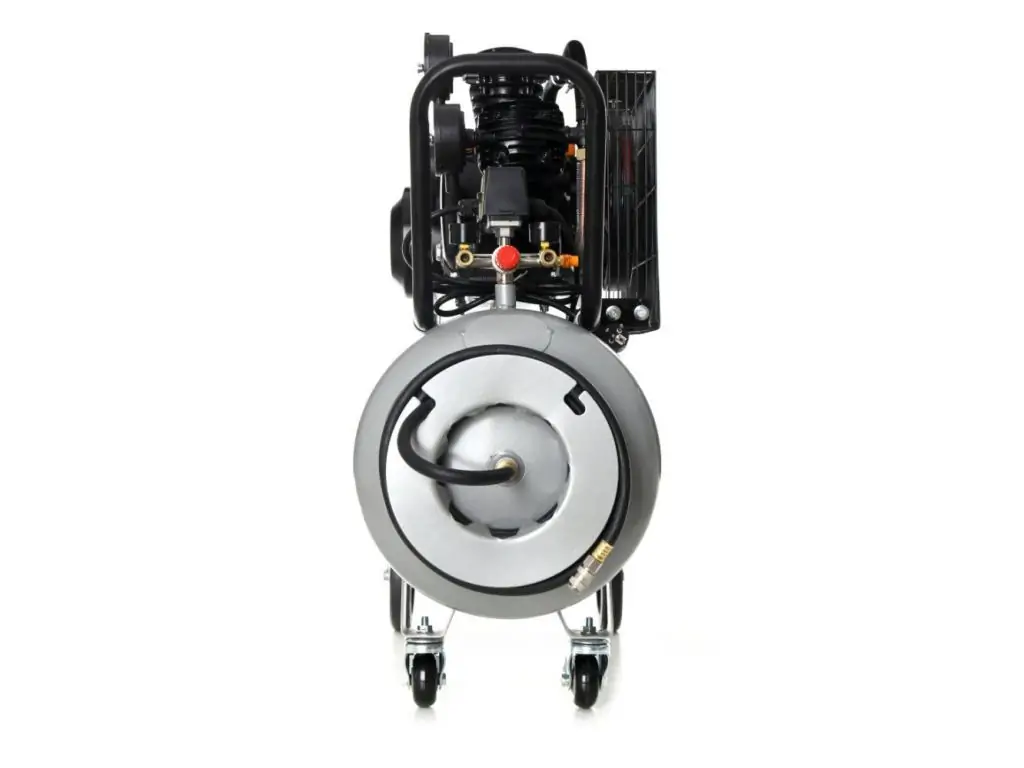 Небольшой вес компрессора делает его очень эргономичным, он также имеет автоматическую систему смазки, фильтрацию воздуха, редуктор давления и транспортные колеса.