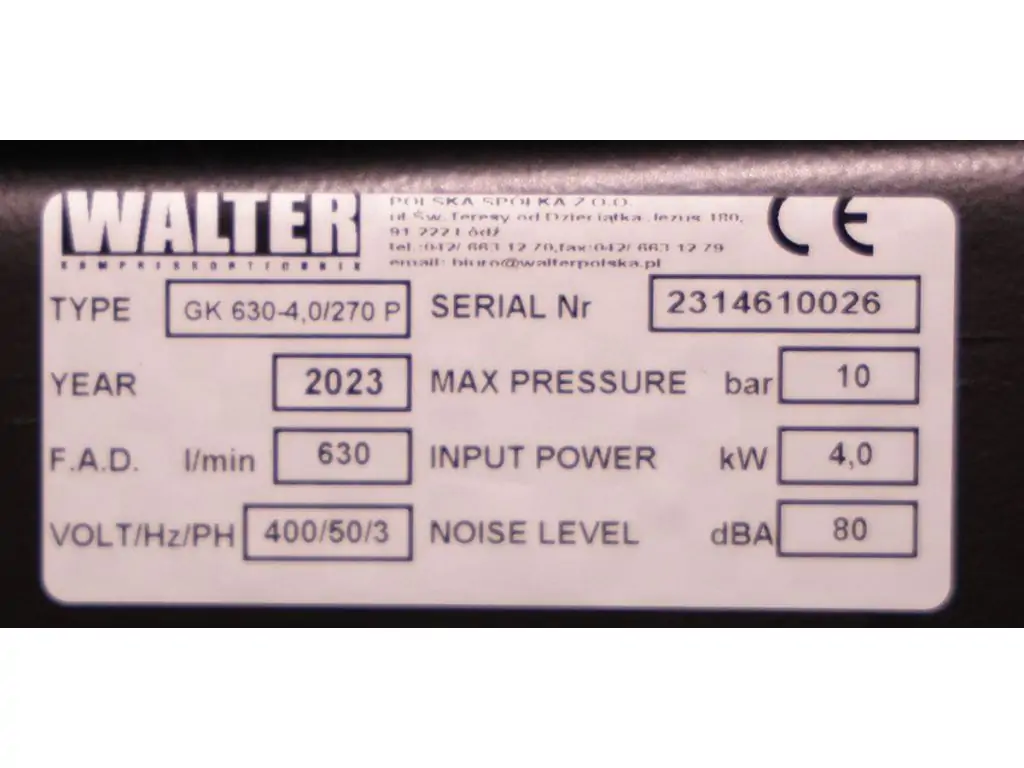 Оборудование WALTER производится только из лучших европейских компонентов, известно качественной заводской сборкой и точностью технических характеристик, что позволяет быть уверенным в его надежности. Купить компрессор для покраски и других работ WALTER GK 630-4,0/270 можно на сайте официального поставщика бренда в Украине KMA.UA.