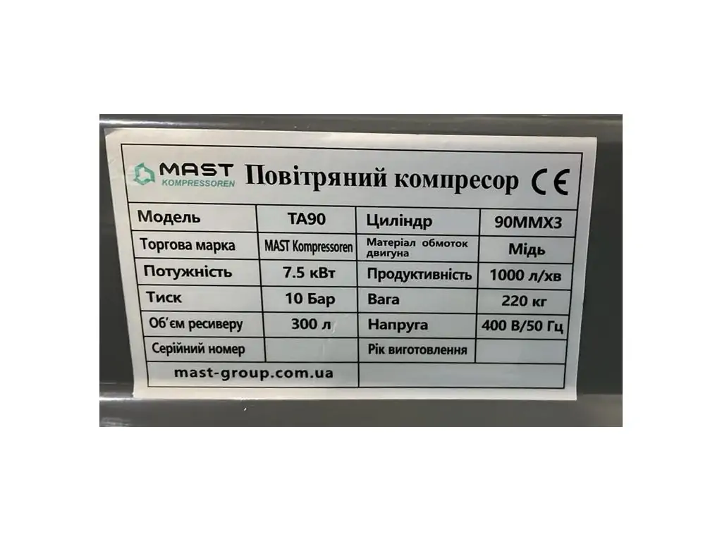 Плюсы и минусы поршневого компрессора MAST TA90/300L 400V