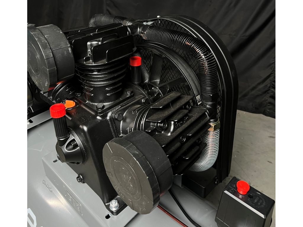 Поршневой компрессор Mast TB90/300L 400V с производительностью 900 л/мин и максимальным давлением 10 Бар разработан для профессионального использования на СТО, в производственных цехах, средних и больших мастерских, поддерживая стабильную подачу сжатого воздуха и длительный цикл работы пневматического оборудования. Горизонтальный ресивер объемом 300 л уменьшает количество включений двигателя и поддерживает стабильное давление при пиковых нагрузках и длительной работе. Трехцилиндровая компрессорная голова с поршнями Ø 90 мм обеспечивает быстрое наполнение ресивера, меньшее количество вибраций, равномерное распределение нагрузки и лучший отвод тепла.