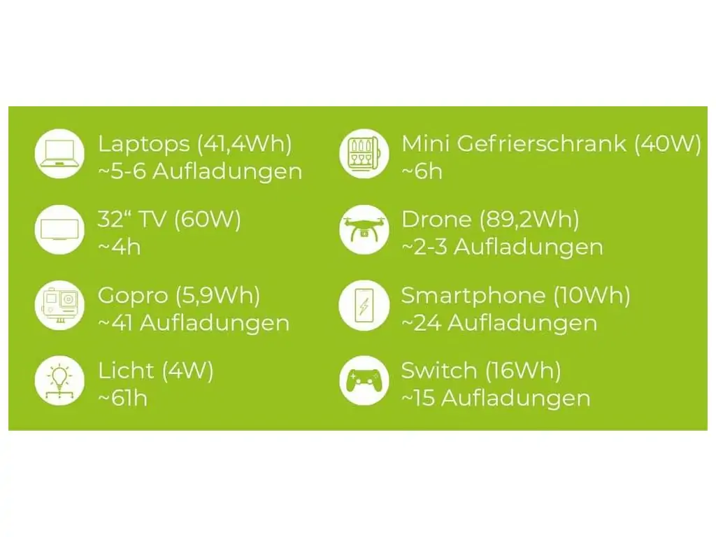 Смартфоны, планшеты, ноутбуки, GoPro, роутеры, даже холодильники и телевизоры. Главное, чтобы потребляемая мощность оборудования не превышала возможности станции.