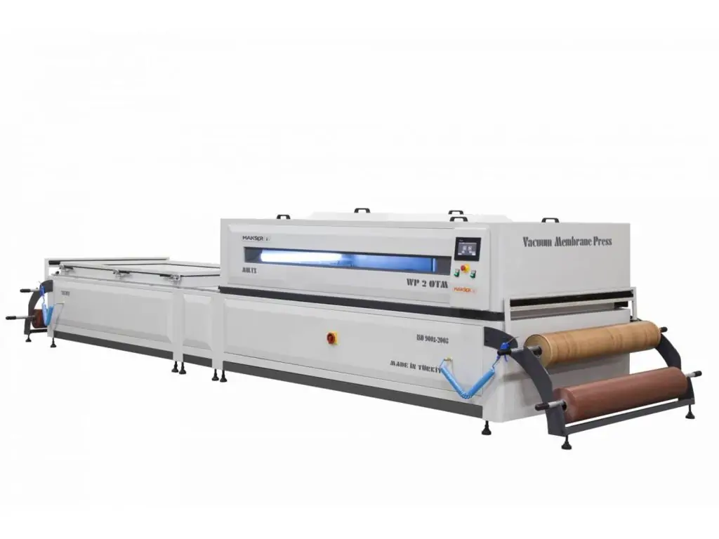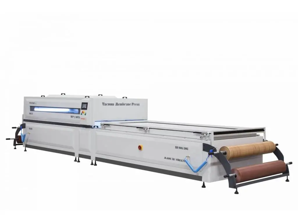 Ламинирование пленкой ПВХ и материалов GPET, в плоских или трехмерных приложениях ламинирования на таких материалах, как плита МДФ, фанера. Это профессиональная машина, предназначенная для использования в производстве шпона из натурального дерева, формовании, производстве различной мебели и шпона, а также для нанесения покрытий на двери и шкафы, кухонные панели, двери шкафов ванных комнат и спален.