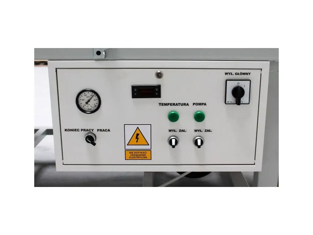 Размер рабочей поверхности составляет 2850х1150 мм. Гибкая мембрана с растяжимостью 700% обеспечивает качественный прижим как плоских, так и фасонных деталей. Вакуумный насос мощностью 750 Вт работает от трехфазной сети. Пресс простой в использовании и легкий в обслуживании, а прочная стальная конструкция гарантирует его надежную, долговременную службу. Купить мембранно-вакуумный пресс от производителя с гарантией можно на сайте официального поставщика KMA.UA.