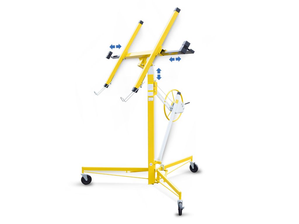 - панельный подъемник используется для подъема гипсокартона, ДСП, обшивки потолка и многого другого;