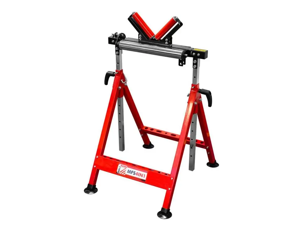 Многофункциональная стойка Holzmann MFS 4IN1 – это полезное оборудование-трансформер для домашних и профессиональных мастерских, выполняющее сразу 4 функции. Может использоваться как роликовая опора для поддержки длинных заготовок, шариковая опора для поддержки и перемещения заготовок в разных направлениях, V-образная опора для круглых и профильных деталей и стационарная подставка для разных типов работ. Регулировка высоты от 685 до 1100 мм позволяет максимально настроить подставку под собственные потребности. Высоту можно отрегулировать одной рукой.