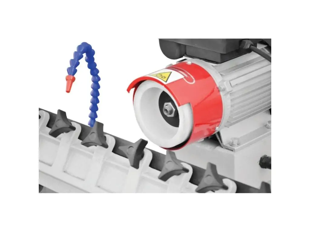 Станок работает на основе двигателя мощностью 550 Вт с питанием от напряжения 230 В. Массивная, вибростойкая литая конструкция и система водяного охлаждения лезвия обеспечивают высокую точность и качество заточки. Легкий механизм крепления позволяет быстро зафиксировать нож в станке. Диаметр шлифовального круга – 100 мм, максимальная скорость вращения – 2800 об/мин. Устройство можно установить как на полу, так и на любой стабильной рабочей поверхности. Легкая эксплуатация, простое обслуживание и отличный функционал делают этот заточной станок для ножей очень удобным и эффективным как для небольших мастерских, так и для предприятий.