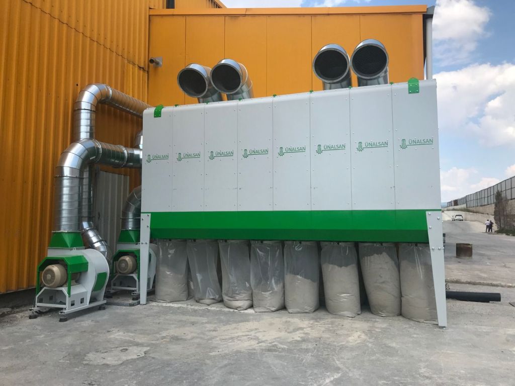 Каждая секция имеет два полиэтиленовых мешка для сбора отходов и 18 рукавных фильтров размером D160х1680 мм.