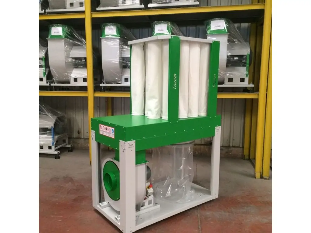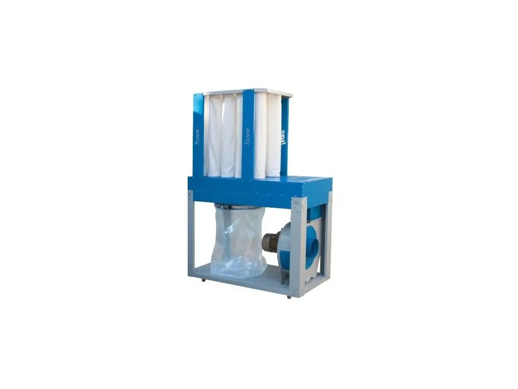 Пыль и древесные отходы собираться в полиэтиленовые прозрачные мешки, которые герметично закреплены металлическими хомутами на корпусе фильтрационной установки.