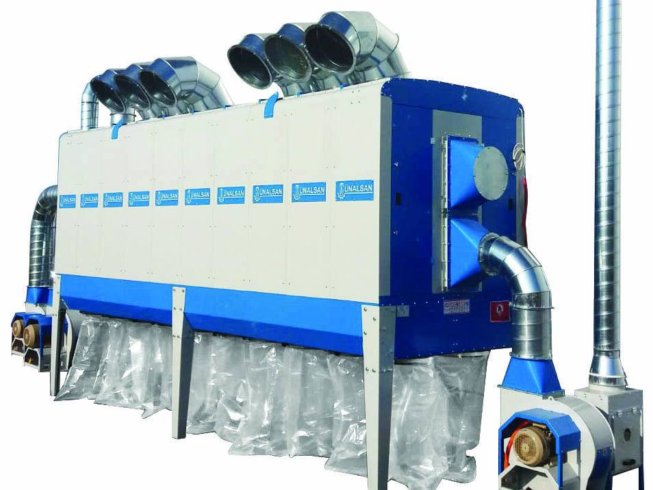 Каждая секция имеет два полиэтиленовых мешка для сбора отходов и 18 рукавных фильтров размером D160х1680 мм.