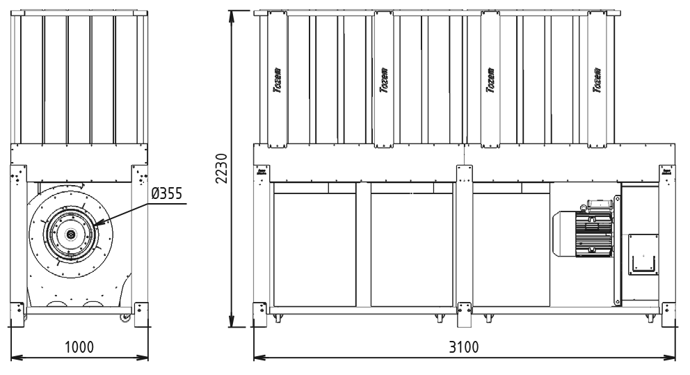 - на раме вентилятора имеются 4 виброгасителя для уменьшения вибрации при работе;