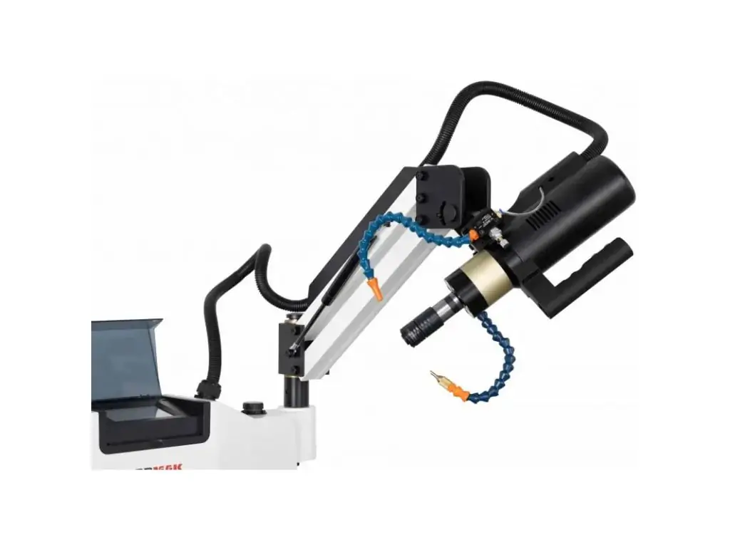 Станок оснащен системой микрораспыления смазки, обеспечивающей постоянное охлаждение с минимальным расходом материала, и продувочной системой, которая удаляет стружку и поддерживает максимальную видимость рабочей зоны. Быстрозажимной патрон позволяет быстро и легко крепить метчики для сквозных и глухих отверстий. Этот настольный резьбонарезной станок отлично подходит для работы со сталью, нержавеющей сталью, алюминием и цветными металлами.