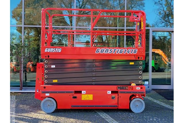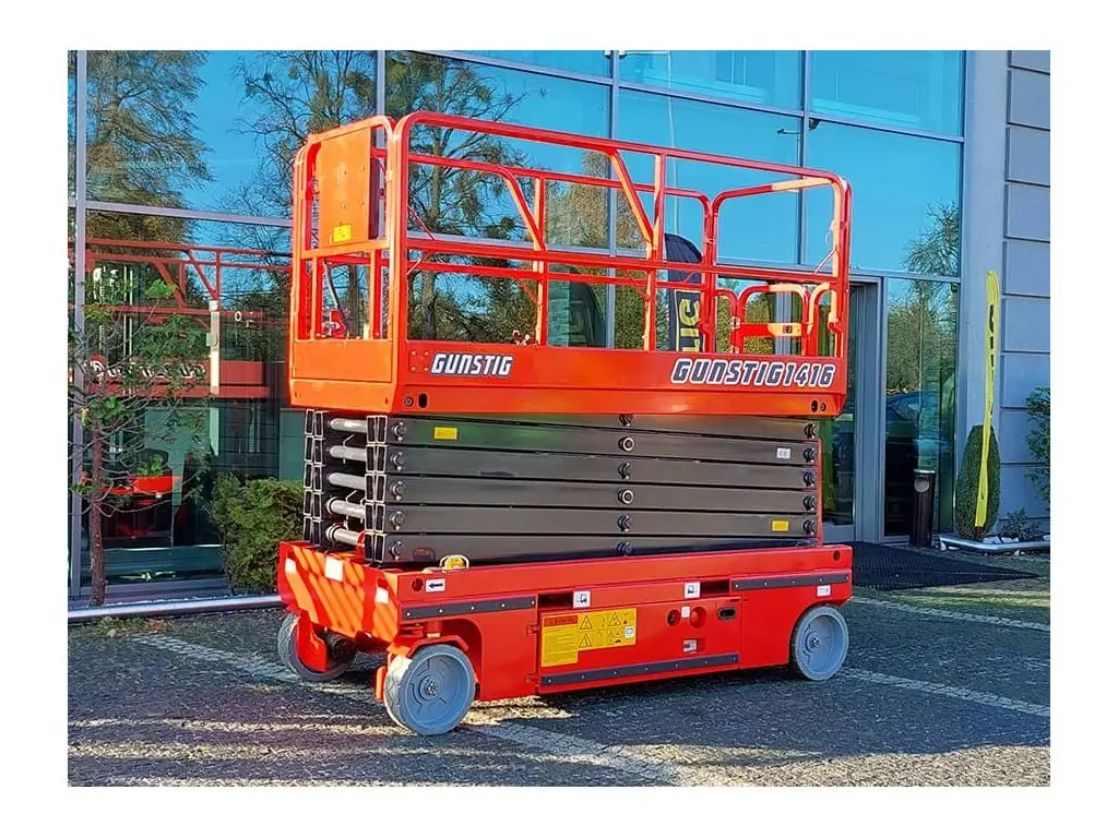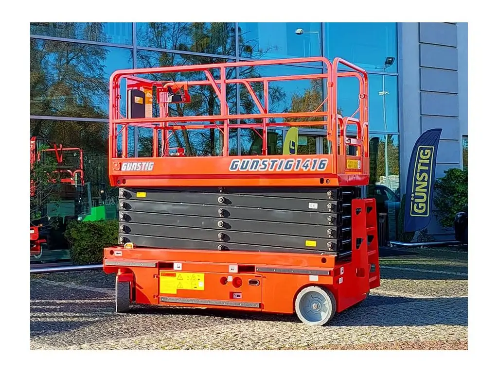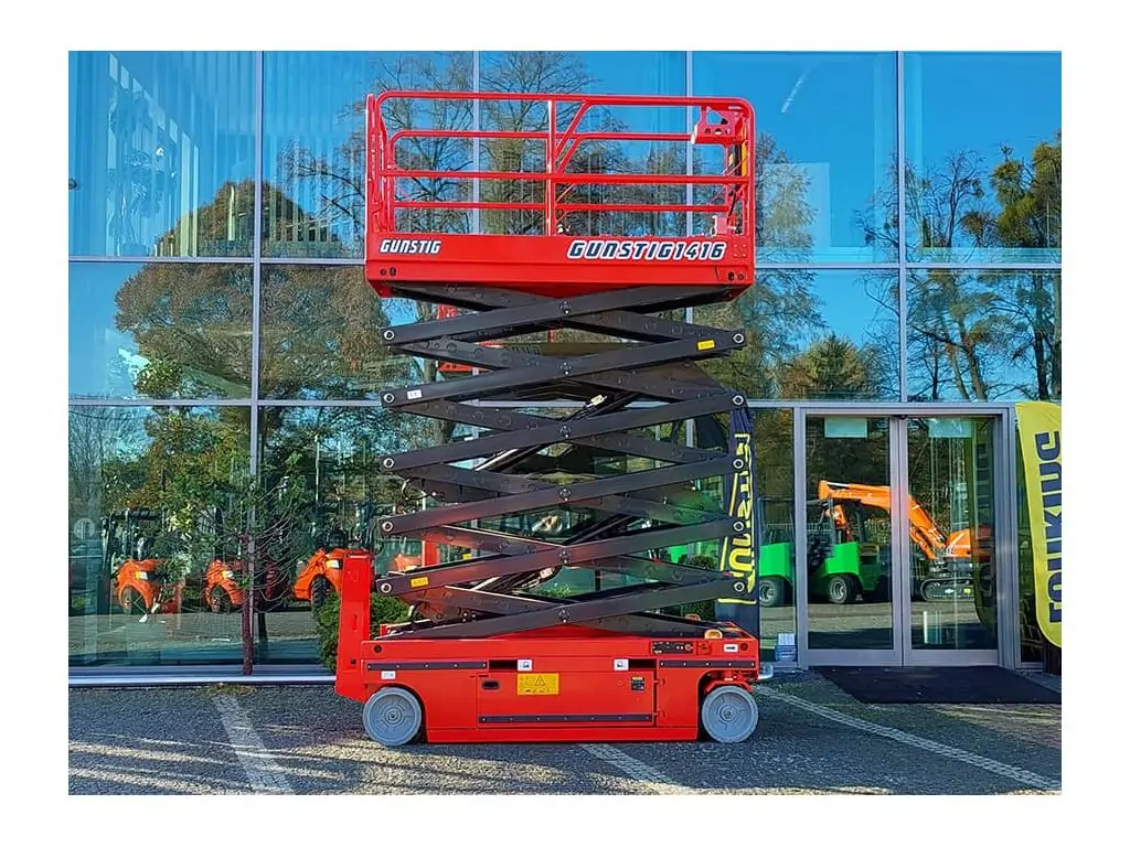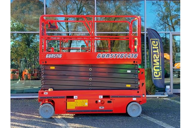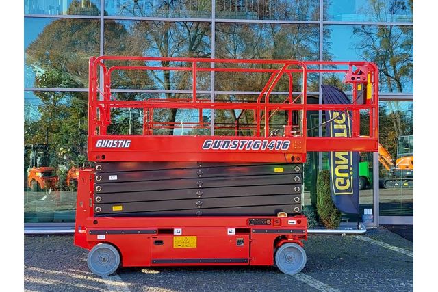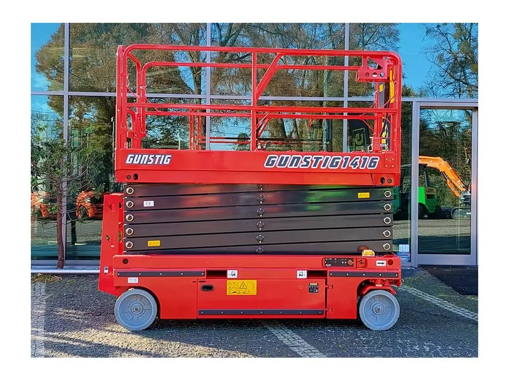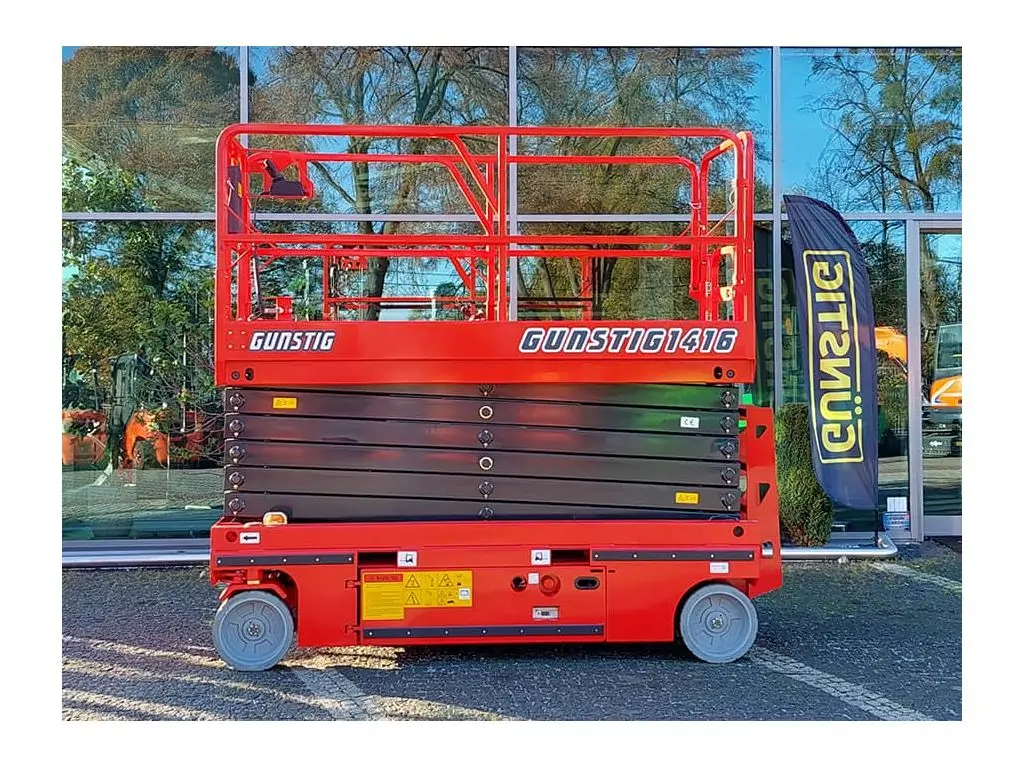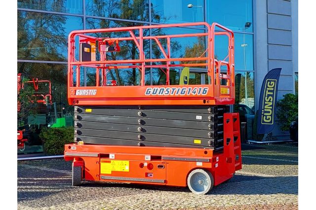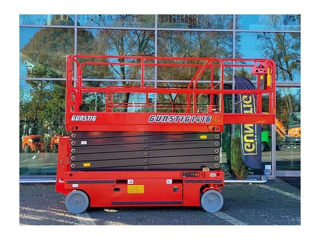 Ножничный подъемник Günstig 1416 – это надежное оборудование для работы на высоте, которое можно использовать как в закрытых помещениях, так и под открытым небом. Платформа размером 2640×1120 мм имеет грузоподъемность 230 кг и рассчитана на 2 операторов. Для безопасности работы есть защитное ограждение и рифленое покрытие, улучшающее сцепление обуви с поверхностью. Высота платформы – 13,7 м, рабочая высота – 15,7 м. Для расширения радиуса работы есть выдвижная платформа длиной 900 мм, выдерживающая нагрузку до 113 кг.