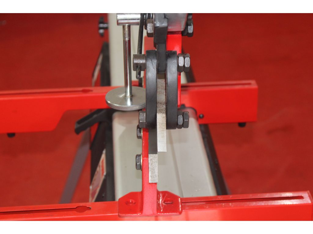 Лезвия изготовлены из углеродистой стали, имеют высокую режущую способность и длительное сохранение остроты. Для резки прутков на лезвиях есть специальные выемки. Автоматический пружинный возврат рычага в исходное положение после окончания реза облегчает работу и делает ее более удобной. Для предотвращения скручивания и деформации заготовки есть автоматическое прижимное устройство. Корпус из чугуна минимизирует вибрации, а монтажные отверстия обеспечивают надежную фиксацию инструмента на рабочей поверхности. Эта ручная гильотина по металлу полностью автономная в работе и имеет низкие эксплуатационные расходы, что делает ее выгодным приобретением для выездных работ и использования в мастерской.