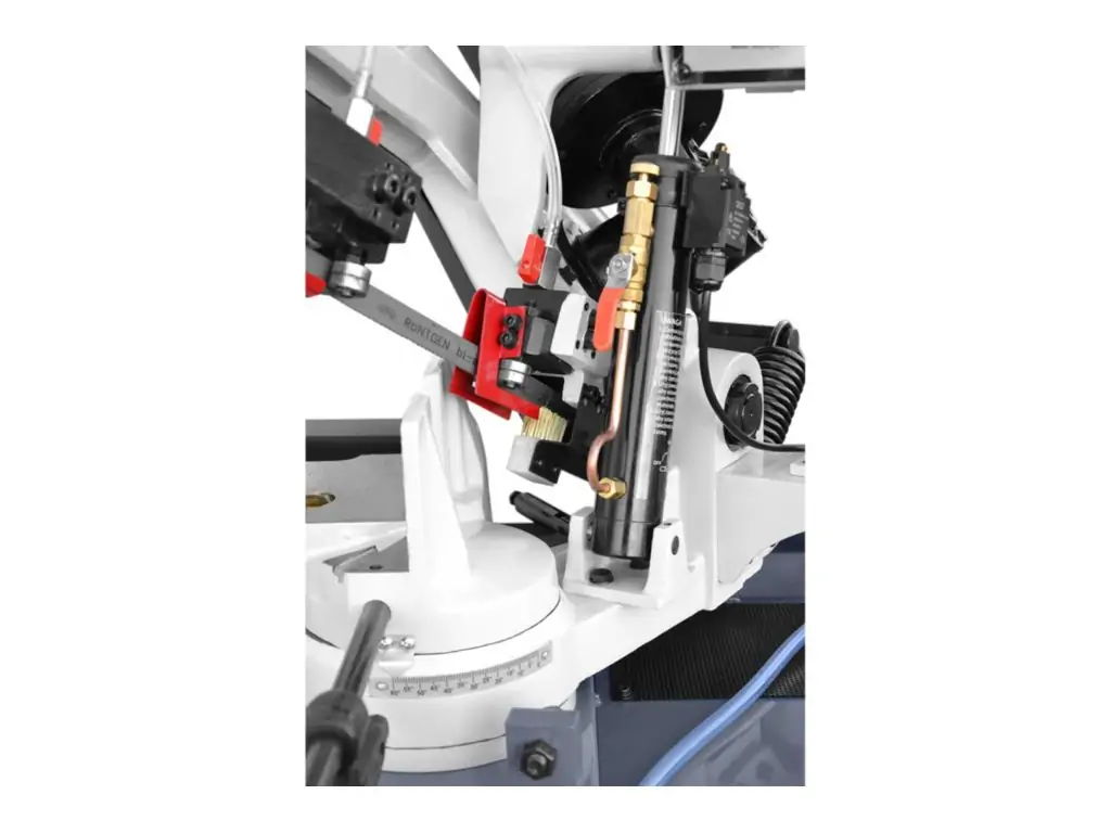 Для повышения эффективности работы станка установлен СОЖ. ЗОР – это смазочно-охлаждающая жидкость, которая отвечает за охлаждение полотна, что помогает избежать перегрева и соответственно растяжения и убывания его со шкивов, увеличивает срок службы полотна, поскольку при нагреве повышенная температура негативно влияет на твердость зубов полотна и ускоренного их затупления. Охлаждение позволяет работать при более высоких скоростях полотна без его перегрева, что улучшает производительность и эффективность резки.