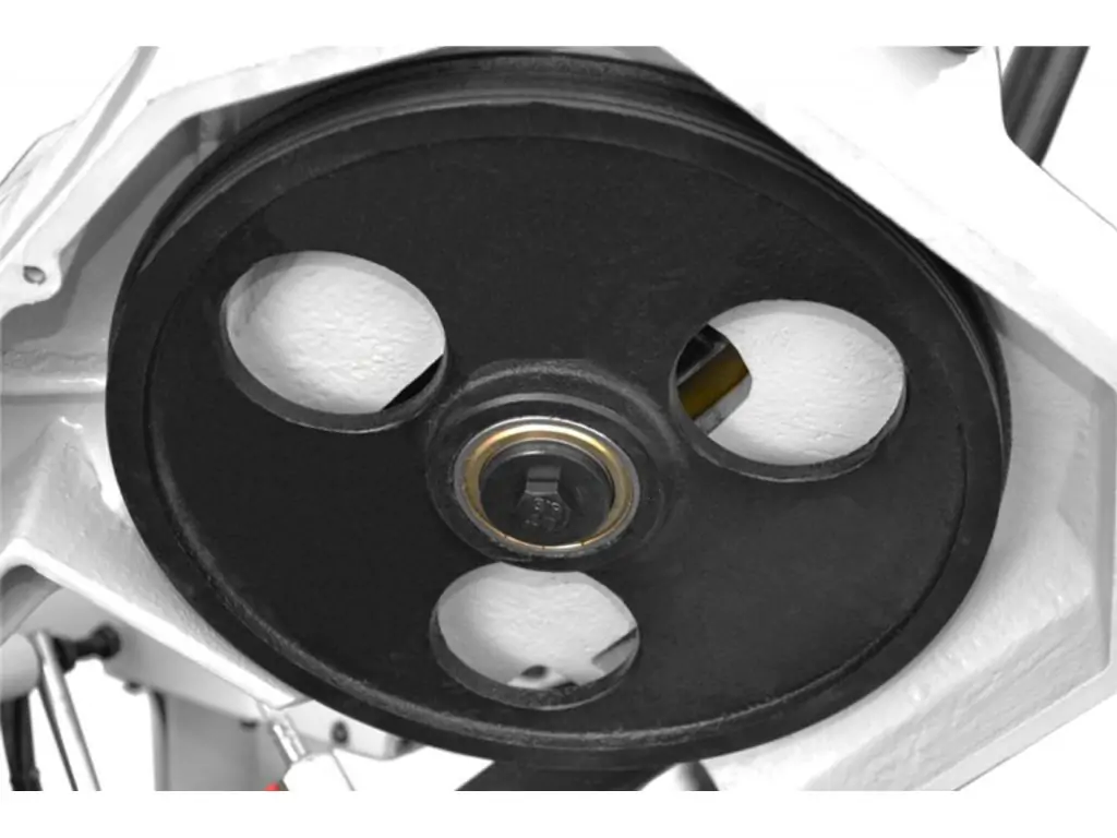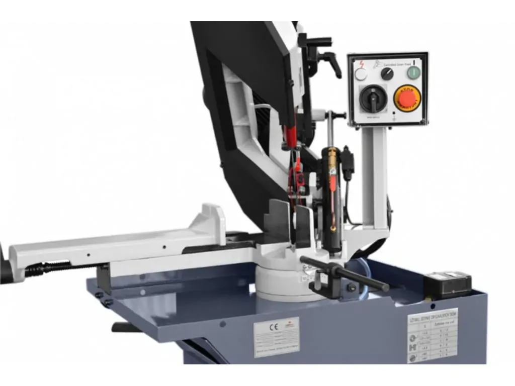 Данный станок оборудован двух скоростным двигателем (две обмотки), регулировка происходит за счет переключения на пульты управления. Регулировка скорости в ленточных пилах по металлу является важной функцией, так как она оказывает непосредственное влияние на качество и скорость работы с заготовкой. Регулировка скорости позволяет оператору адаптировать скорость резания к конкретному материалу, непосредственно влияющему на эффективность и качество обработки. Подбор соответствующей скорости поможет избежать перегрева полотна или заготовки, что способствует более длительному сроку службы полотна и ожидаемому результату от работы, а также регулировка помогает избежать излишней вибрации.