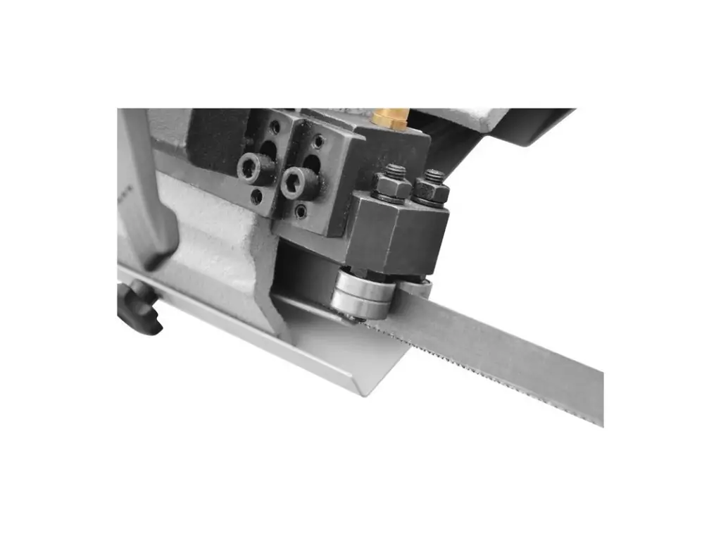 Для повышения эффективности работы станка установлен СОЖ. СОЖ – это смазочно-охлаждающая жидкость, которая отвечает за охлаждение полотна, что помогает избежать перегрева и соответственно растяжения и убывания его со шкивов, увеличивает срок службы полотна, поскольку при нагреве повышенная температура негативно влияет на твердость зубов полотна и ускоренного их затупления. Охлаждение позволяет работать при более высоких скоростях полотна без его перегрева, что улучшает производительность и эффективность резки.