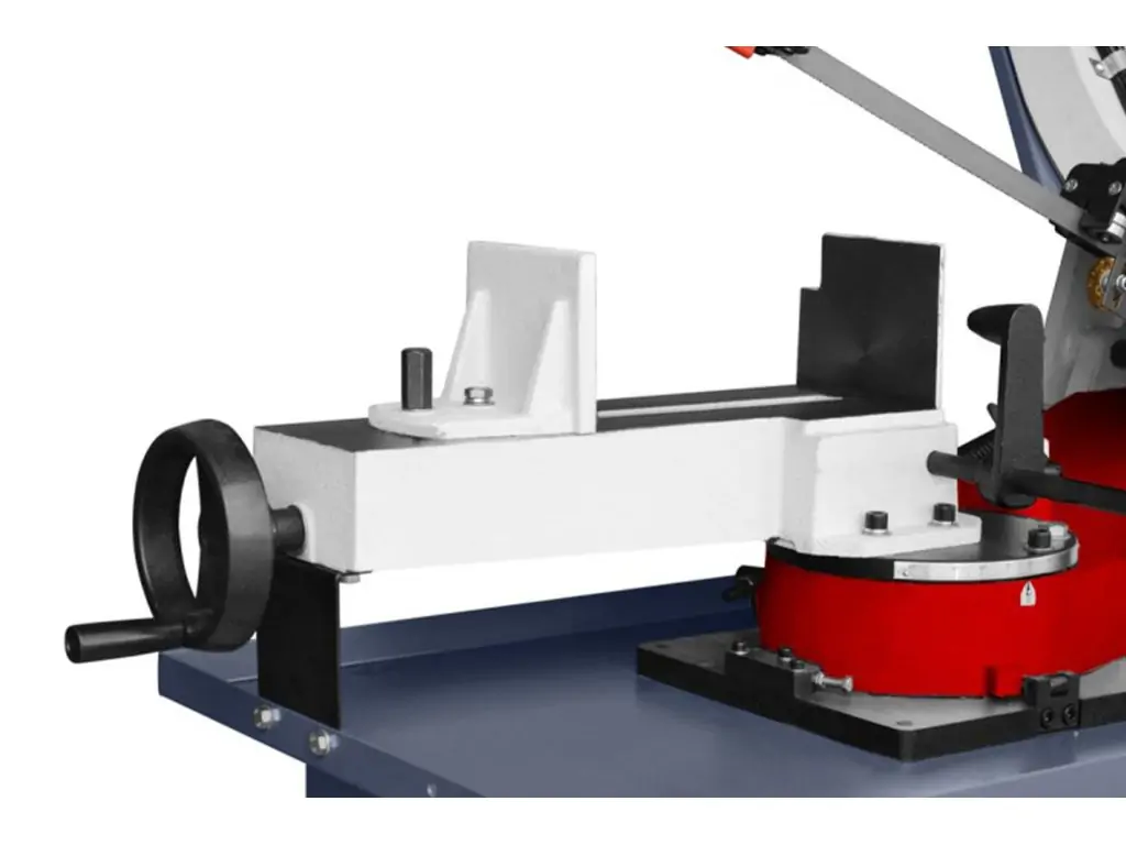 Данный станок оборудован ременной передачей, регулировка скорости происходит за счет опрокидывания ремня на соответствующий шкив. Регулировка скорости в ленточных пилах по металлу является важной функцией, так как она оказывает непосредственное влияние на качество и скорость работы с заготовкой. Регулировка скорости позволяет оператору адаптировать скорость резания к конкретному материалу, непосредственно влияющему на эффективность и качество обработки. Подбор соответствующей скорости поможет избежать перегрева полотна или заготовки, что способствует более длительному сроку службы полотна и ожидаемому результату от работы, а также регулировка помогает избежать излишней вибрации.