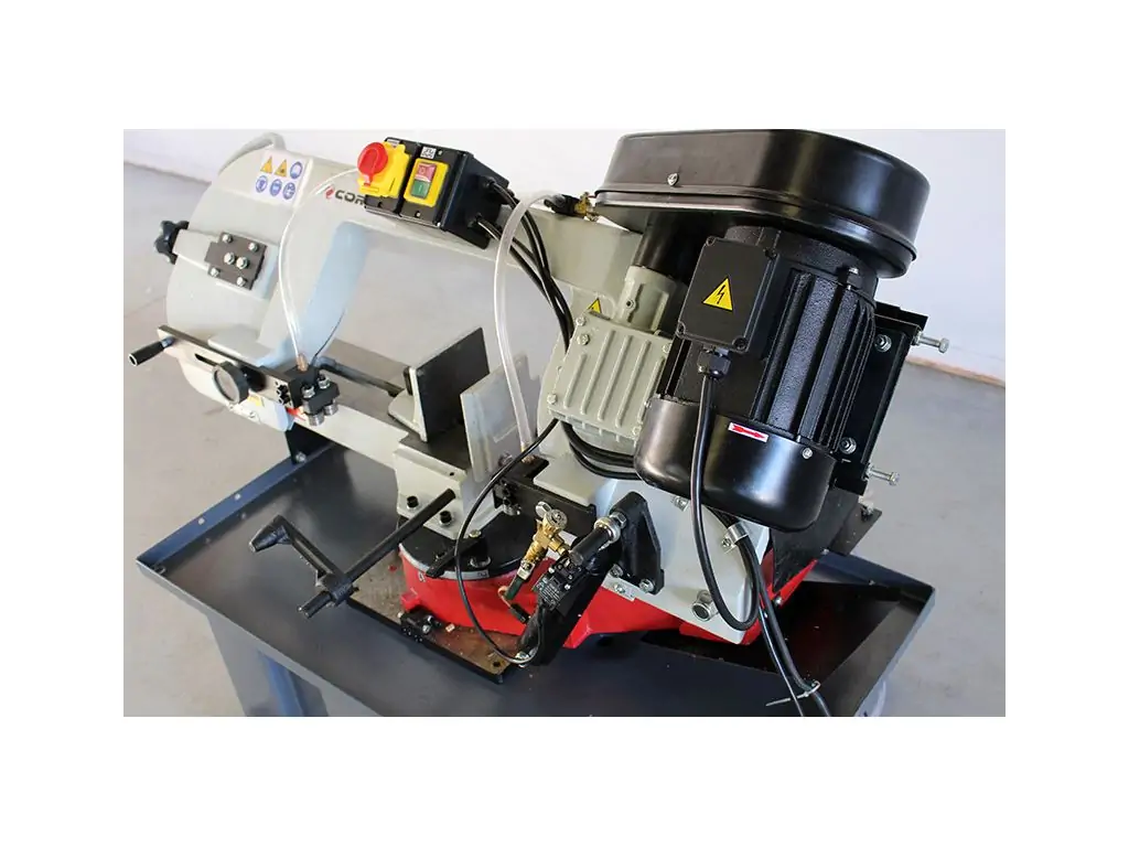 Для повышения эффективности работы станка установлен СОЖ. СОЖ – это смазочно-охлаждающая жидкость, которая отвечает за охлаждение полотна, что помогает избежать перегрева и соответственно растяжения и убывания его со шкивов, увеличивает срок службы полотна, поскольку при нагреве повышенная температура негативно влияет на твердость зубов полотна и ускоренного их затупления. Охлаждение позволяет работать при более высоких скоростях полотна без его перегрева, что улучшает производительность и эффективность резки.