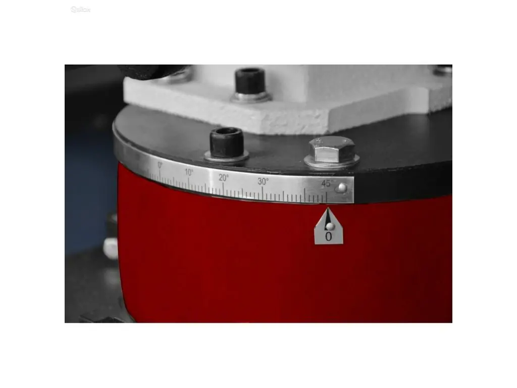 Способность резать под углами представляет собой незаменимую функцию станка, данная модель оборудована поворотной головой. В отличие от станка с поворотными давлениями, на станке с поворотной режущей головой заготовку не нужно поворачивать вокруг станка. Это очень актуально для заготовок большой протяженности. Также поворотная голова позволяет добиться лучшей точности угла реза. Поворотную голову гармонично дополняет эксцентриковый зажим давлений, позволяющий после регулировки давлений быстро зафиксировать или отпустить заготовку без повторной регулировки, что увеличивает эффективность работы станка.