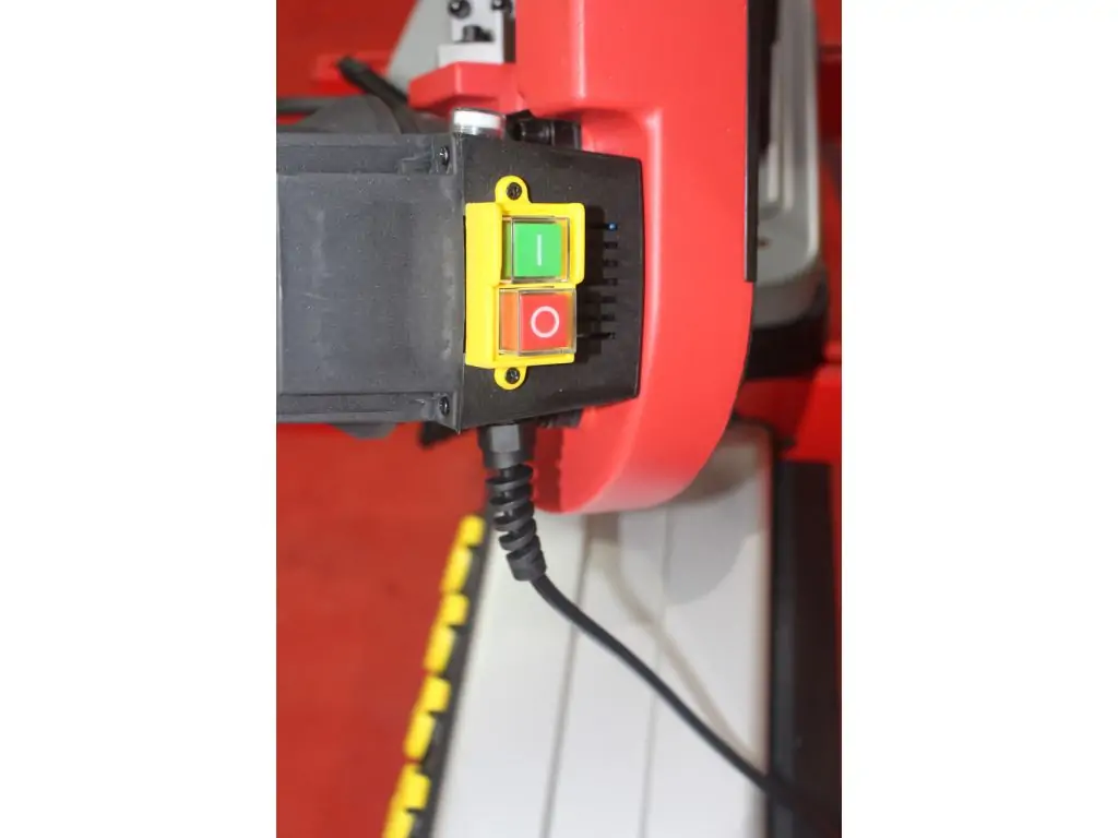 Данный станок оборудован потенциометром, позволяющим достаточно точно подобрать скорость под любой материал заготовки. Регулировка скорости в ленточных пилах по металлу является важной функцией, так как она оказывает непосредственное влияние на качество и скорость работы с заготовкой. Регулировка скорости позволяет оператору адаптировать скорость резания к конкретному материалу, непосредственно влияющему на эффективность и качество обработки. Подбор соответствующей скорости поможет избежать перегрева полотна или заготовки, что способствует более длительному сроку службы полотна и ожидаемому результату от работы, а также регулировка помогает избежать излишней вибрации.