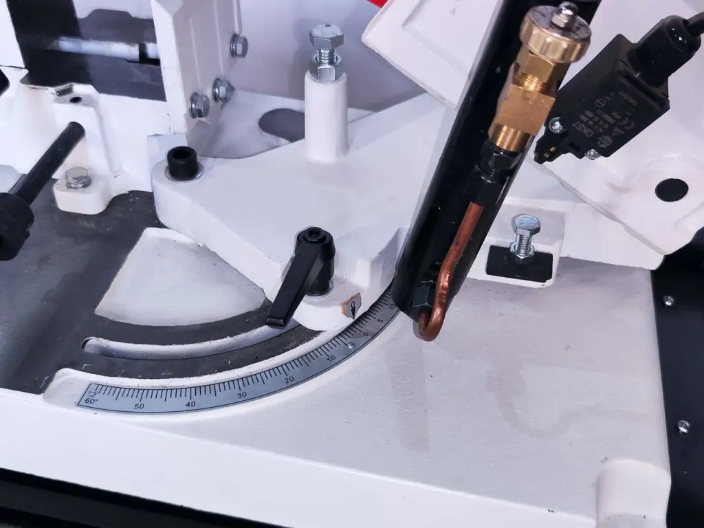 Система охлаждения предотвращает перегрев полотна и материала, что позволяет избежать деформации заготовки и обеспечить более высокое качество реза.