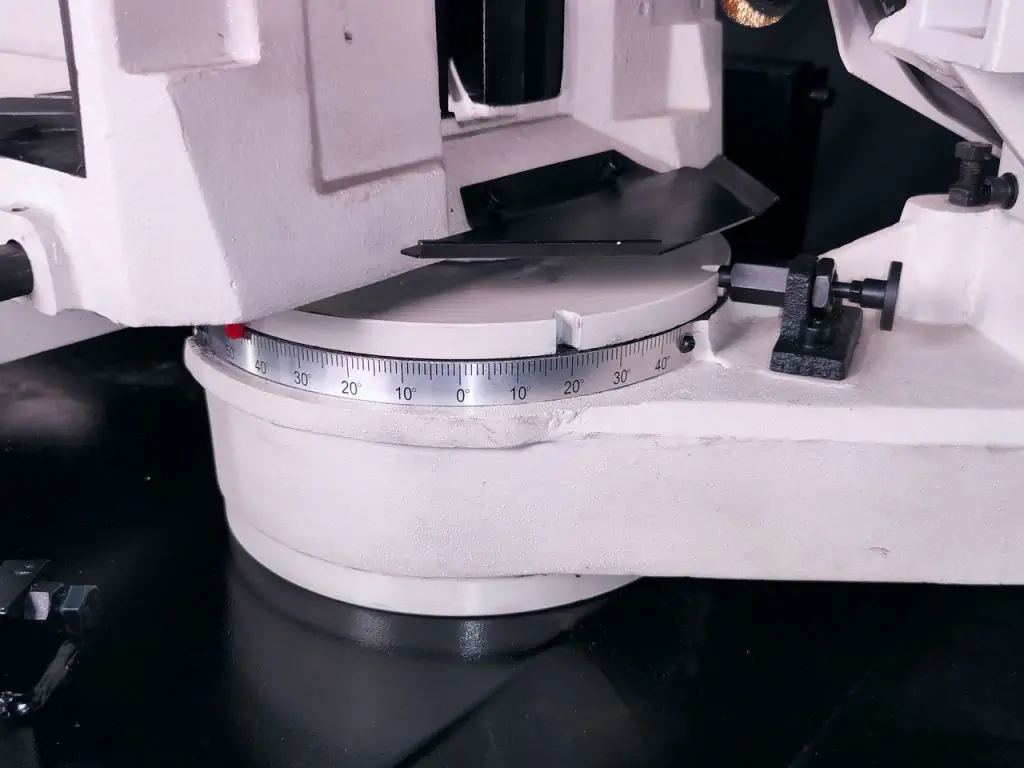 Скорость опускания пильной рамы имеет бесступенчатую регулировку за счет гидроцилиндра. Станок оборудован системой охлаждения СОЖ, манометром для контроля натяжения полотна и чугунными тисками с эксцентриковым зажимом. Жесткая и массивная станина обеспечивает высокую точность распила. Купить это оборудование и другие надежные пилы для резки металла вы можете на нашем сайте с доставкой по Украине.