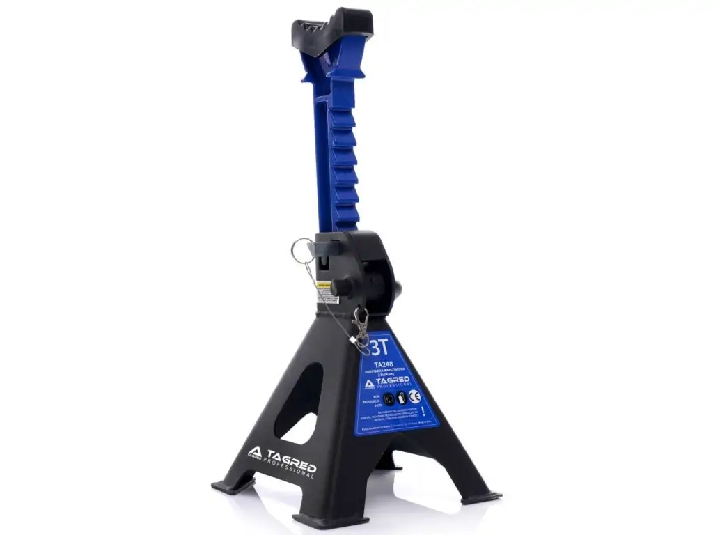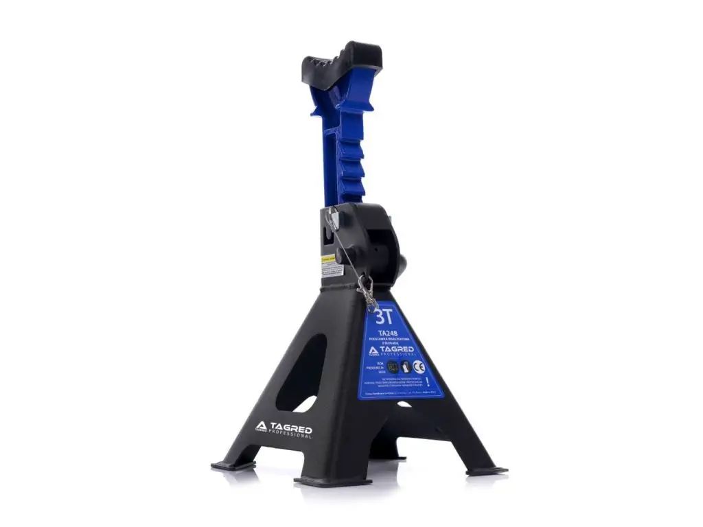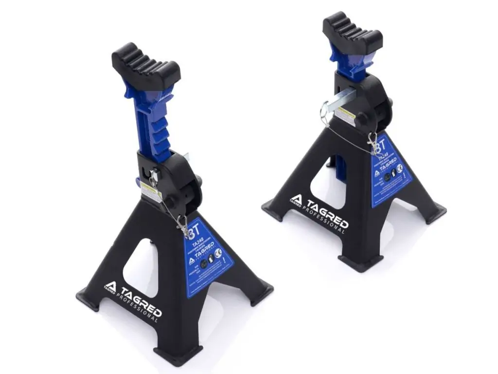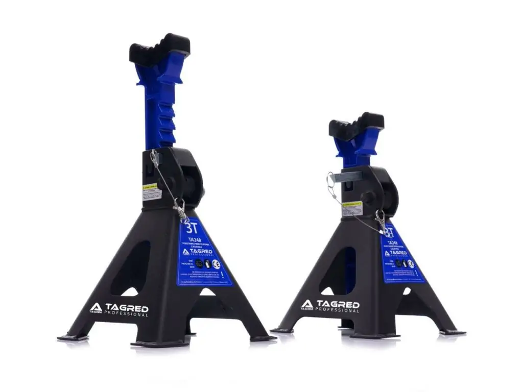 Стойки мастерской под авто усилены, шпильки, замки, резинки 2 шт. TAGRED TA248 могут содержать предметы весом до 3 тонн. Они изготовлены из высококачественных материалов, имеют предохранитель, резиновые колпачки и механизм, позволяющий очень точно регулировать высоту на нескольких уровнях.