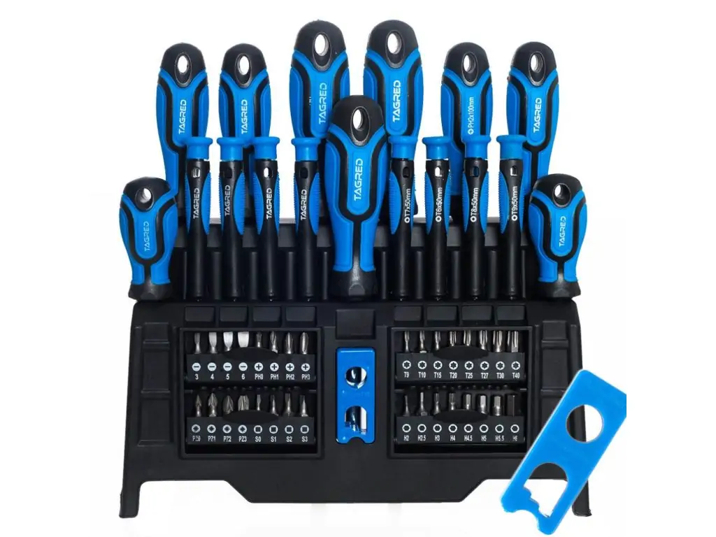 Набор отверток TAGRED TA1095, 50 шт – это инструмент разработанный с учетом максимального комфорта использования, идеально подходит для любой пропорции руки. Использование магнитных наконечников в наборе отверток дает еще больше возможностей и точности заворачивания в труднодоступных местах! Использование при производстве отверток высококачественных материалов, таких как хром-ванадиевый сплав, значительно продлевает срок службы и долговечность. Входящий в комплект намагничитель позволяет намагничивать и размагничивать отвертки, насадки, гаечные ключи и многие другие стальные элементы и инструменты. Прибор не нуждается в питании. Очень сильный магнит может помочь очистить рабочее место, например от металлических опилков.
